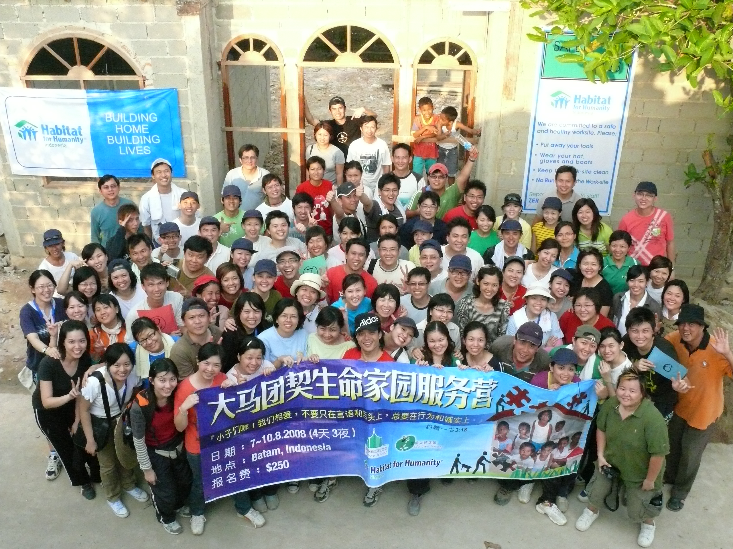 一行人前往巴淡岛参与建立家园的社关项目,包括打地基、建立卫生间、墙壁和屋顶等。